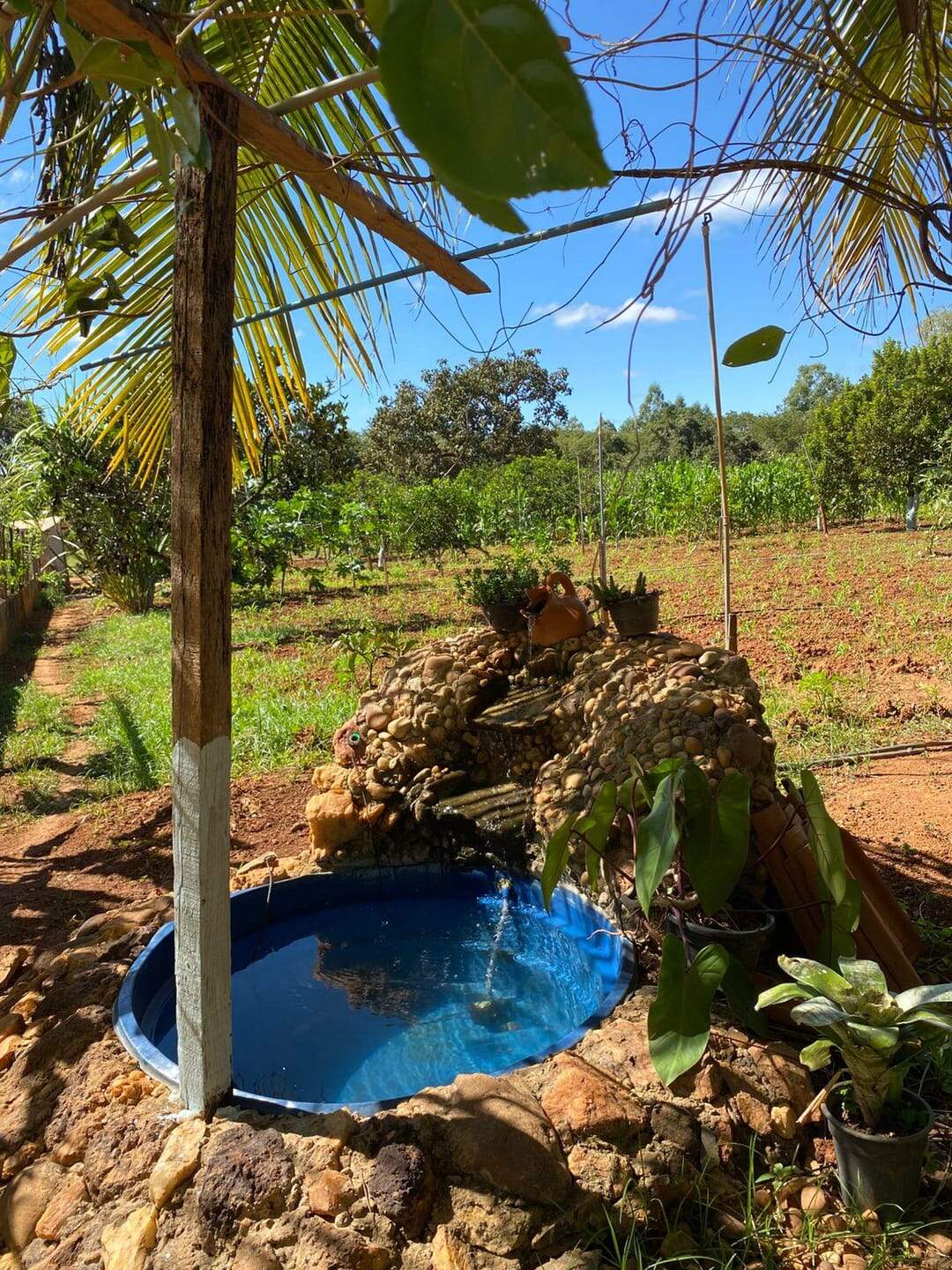 A fazenda conta com uma estrutura pronta para uso, contendo: 01 poço tubular excelente vasao água. Energia solar. Plantio de bananas, milho e outras árvores frutíferas. Hortas, galinheiros, um curral simples de eucaliptos. Terra arenosa com boa drenagem ideal para agricultura.